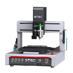 在生产环境中,手机摄像头模组点胶环节分为两种模式,一种使用摆盘在线体上单机作业,即离线生产,人工上料,将产品放入到点胶平台上面然后启动设备进行作业,此种模式适合选用桌面式点胶机;另外—种方式是将产品通过轨道流入到该工位,设备自动点胶,完成后流入到下工序,这种方式为在线作业,可选用高速在线式点胶机。